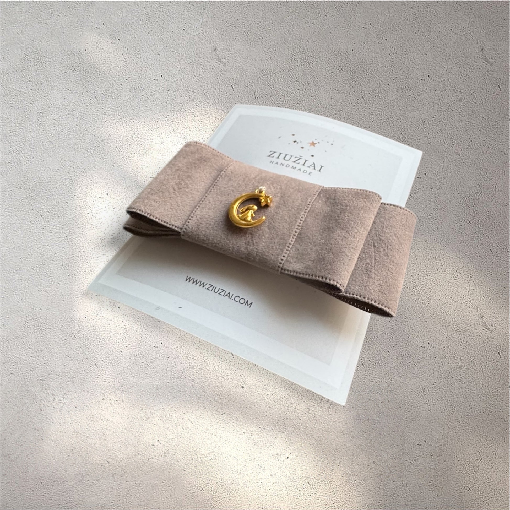 Įnešk švelnaus žavesio ir magijos į kiekvieną šukuoseną! Šis veliūro kaspinėlis ne tik elegantiškas, bet ir unikaliai dekoruotas auksiniu mėnulio ir mažylio kiškučio pakabuku.