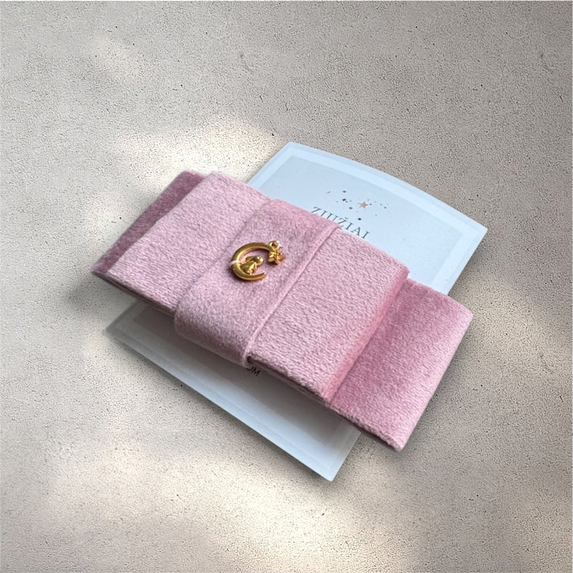 Įnešk pasakiško žavesio į kiekvieną šukuoseną su šiuo elegantišku veliūriniu kaspinėliu, papuoštu auksiniu mėnulio ir mažylio kiškučio pakabuku.